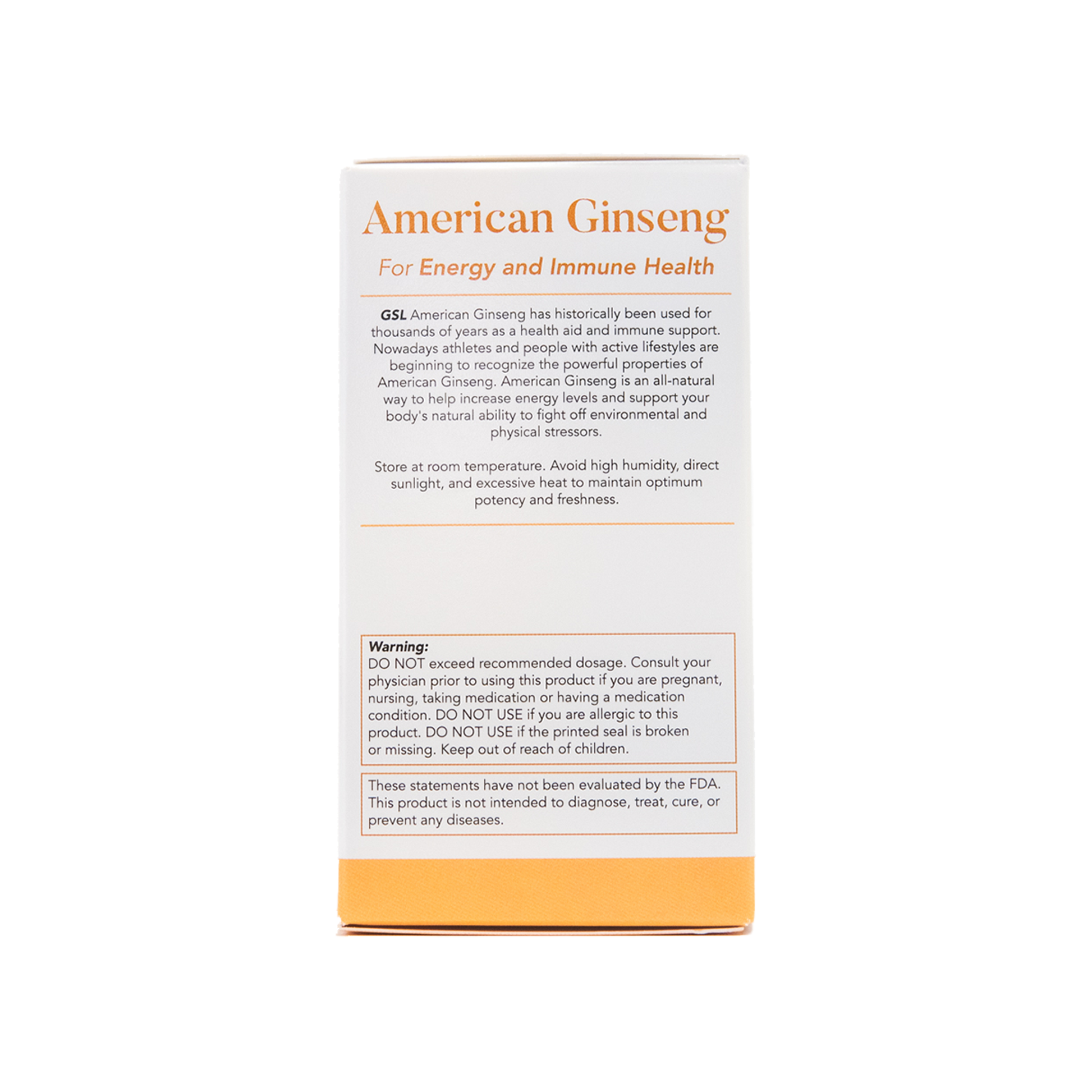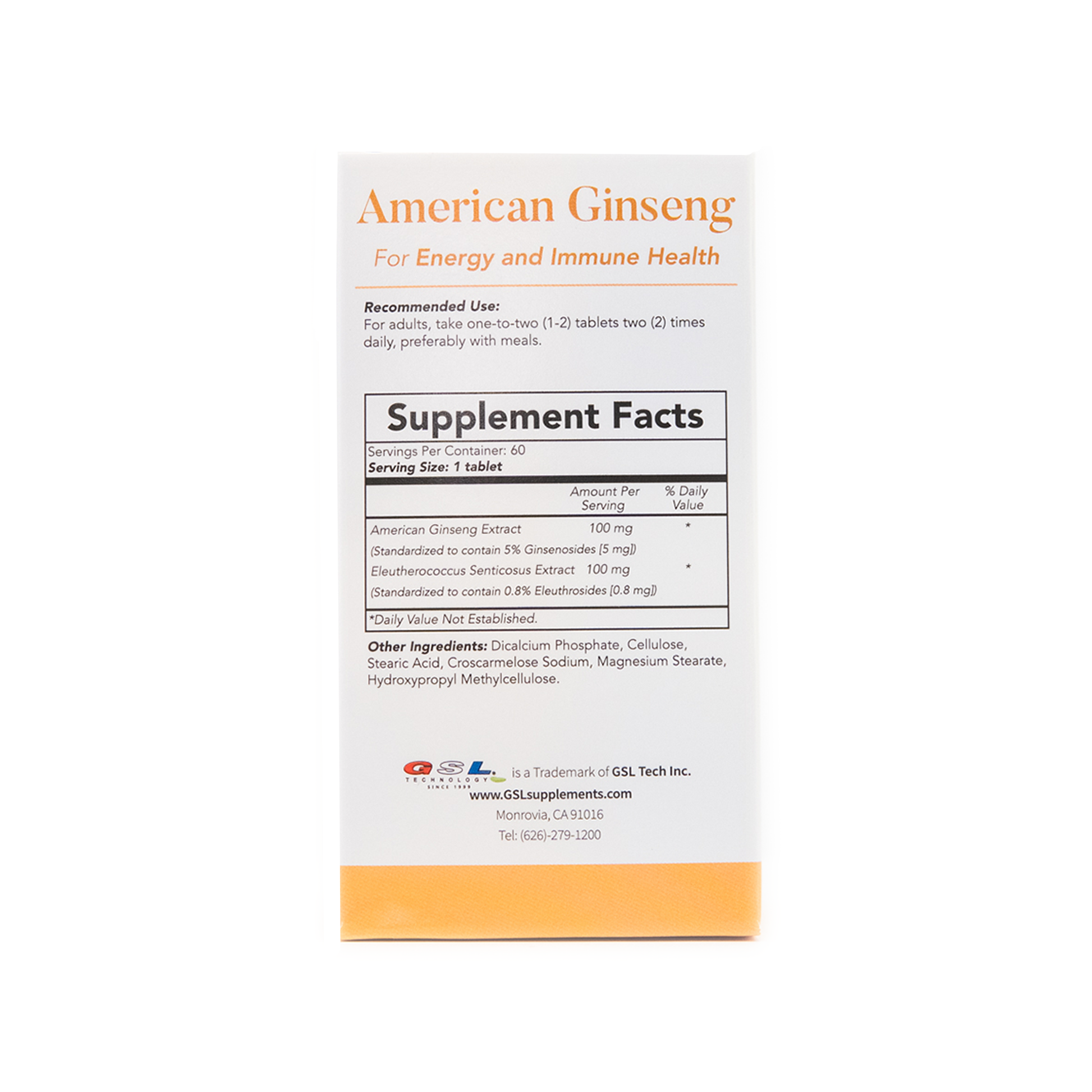 GSL Technology's American Ginseng is a unique formula that combines both American Ginseng Extract with Eleutherococcus Senticosus Extract (Siberian Ginseng Extract.) Our American Ginseng Extract is standardized to contain 5% Ginsenosides and our Eleutherococcus is standardized to contain 0.8% Eleuthrosides.