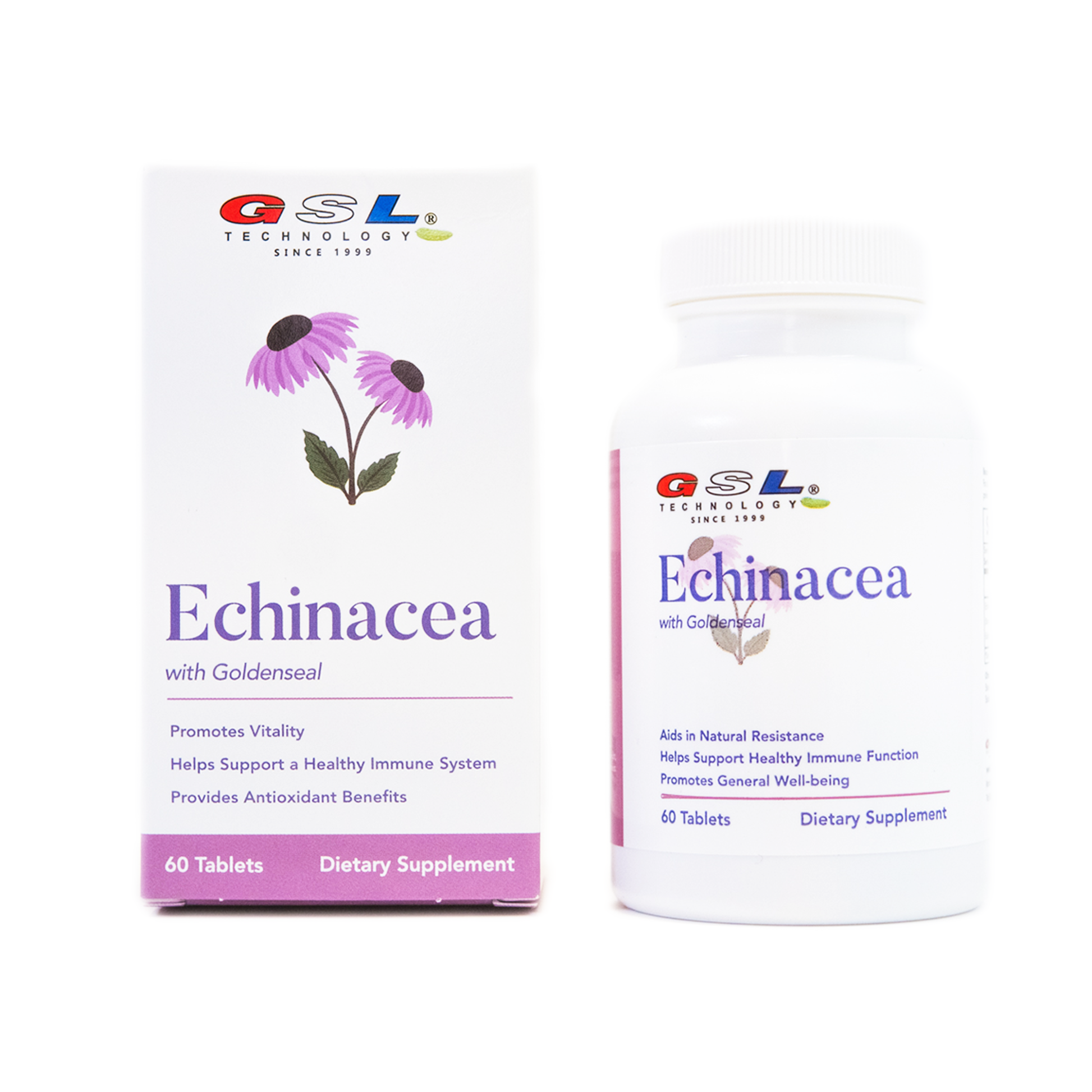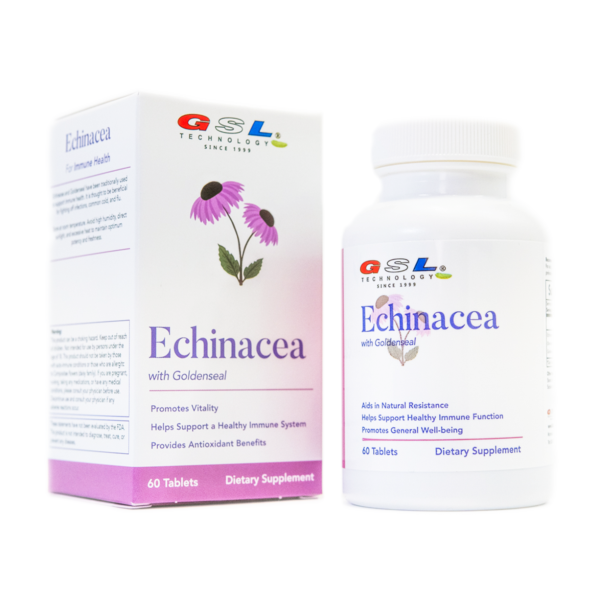 GSL Technology combines both Echinacea and Goldenseal to create a powerful combination that works together to help support your immune health. This powerful combination is thought to be beneficial for fighting off infections, common cold, and the flu. Each tablet contains 200 mg of Echinacea Purpurea Extract as well as 150 mg of Goldenseal Powder. Furthermore, all of our products are made in the U.S.A under FDA cGMP standard and audited to by compliant by NSF.