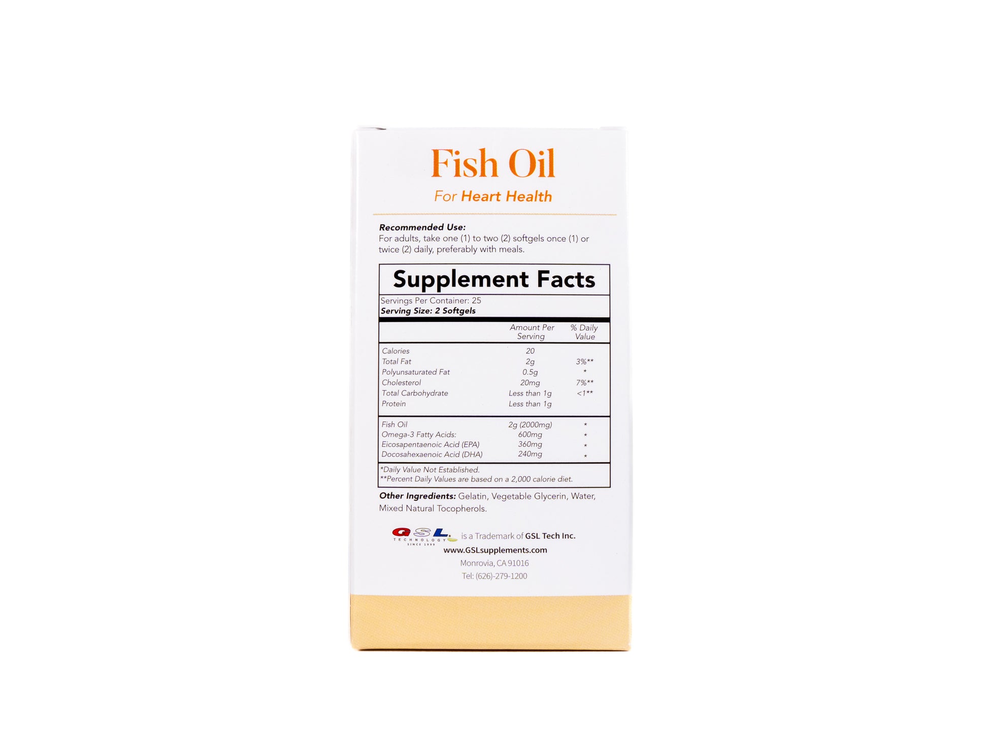 Support your daily health regimen with our premium Omega-3 Fish Oil softgels. Our Fish Oil softgels are a rich source of vital EPA and DHA fatty acids that have been associated with potential heart benefits. EPA and DHA may help support cardiovascular health by maintaining healthy triglyceride levels. In addition, DHA has been linked to help support cognitive function and brain health. Furthermore, Omega-3 fatty acids in Fish Oil possess anti-inflammatory properties that could help with joint health. Our convenient softgels provide an easy way to incorporate these potential benefits into your daily routine.