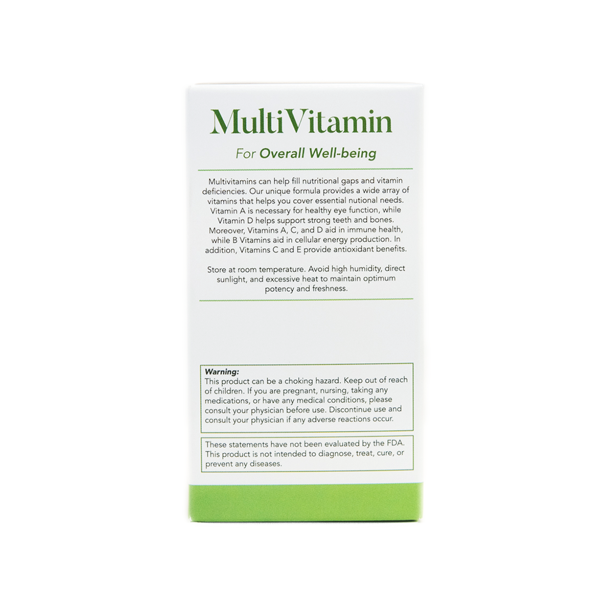 Multivitamins can help fill nutritional gaps and vitamin deficiencies. Our unique formla provides a wide array of vitamins that helps you cover essential nutritional needs. Vitamin A is necessary for healthy eye function while Vitamin D helps support strong teeth and bones. Moreover, Vitamin A, C, and D aid in immune health while B-Vitamins help aid in cellular energy production. In addition, Vitamin C and E provide antioxidant benefits. Whether you're seeking to help fill your nutritional gap or looking for a new Multi-Vitamin, our formula is here to help be a part of your daily routine.